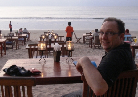After the last meeting today I wanted to relax and opted for one of my favourite places for dinner…Jimbaran Beach. The stretch of beach between the Intercontinental Hotel and the 4 Seasons is renowned for its fresh seafood and the table setting on beach sand with the waves just a few steps away is an experience by itself. It therefore features as my choice for Light Watch today! That also triggered the subject of today…LED or candles. The tables are all fitted with real candles which of course creates a lovely ambiance. Add to that you peaceful view over the bay, the rolling waves and when dark the twinkling lights from the hilly 4 Seasons Resort on one side and those from Intercon on the other with the lights from Kuta and the airport further in the distance. In contrast vendors parade along the beach with …yes LED lights…showing of the goods in the dark! The contrast couldn’t be bigger.