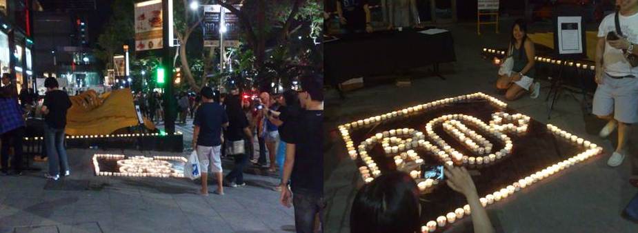In Light Watch today a mood picture of one of the candle light stations along Orchard Road in Singapore.