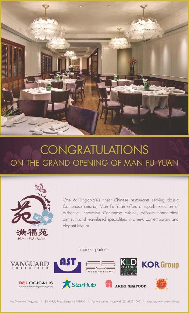 In Light Watch today some self promotion. Man Fu Yuan Restaurant in Singapore’s iconic Intercontinental Hotel was officially opened today after a complete make over. A couple of months design and installation work finally found its culmination in the grand opening. More to follow as the rest of the hotel continues on its renovation path. Meanwhile the restaurant is a first 100% LED restaurant within the IHG group. The warmwhite light however does not reveal that as the overall ambiance feels just like the good old halogen days.