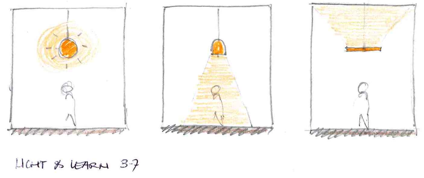 Light & Learn 3-7: Continuing on yesterday’s lighting design solutions I look at a sectional view of a space and show you examples on how with the same lighting location you can create totally different effects.