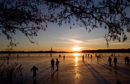 Light Watch 3-18: Holland is skate crazy these days and as an avid skater in my youth I am really jealous to the point of wanting to jump in plane to join the fun. There is such peaceful feeling when all is snow white, the sun shines in the cold and everyone forgets about his or her troubles to go have fun on the frozen canals. See some pictures of the Dutch skate fever. I think these moments are inspirational (just look at the light!) and create memories forever…forget the Eurozone worries for just a while…(picturs from Google)