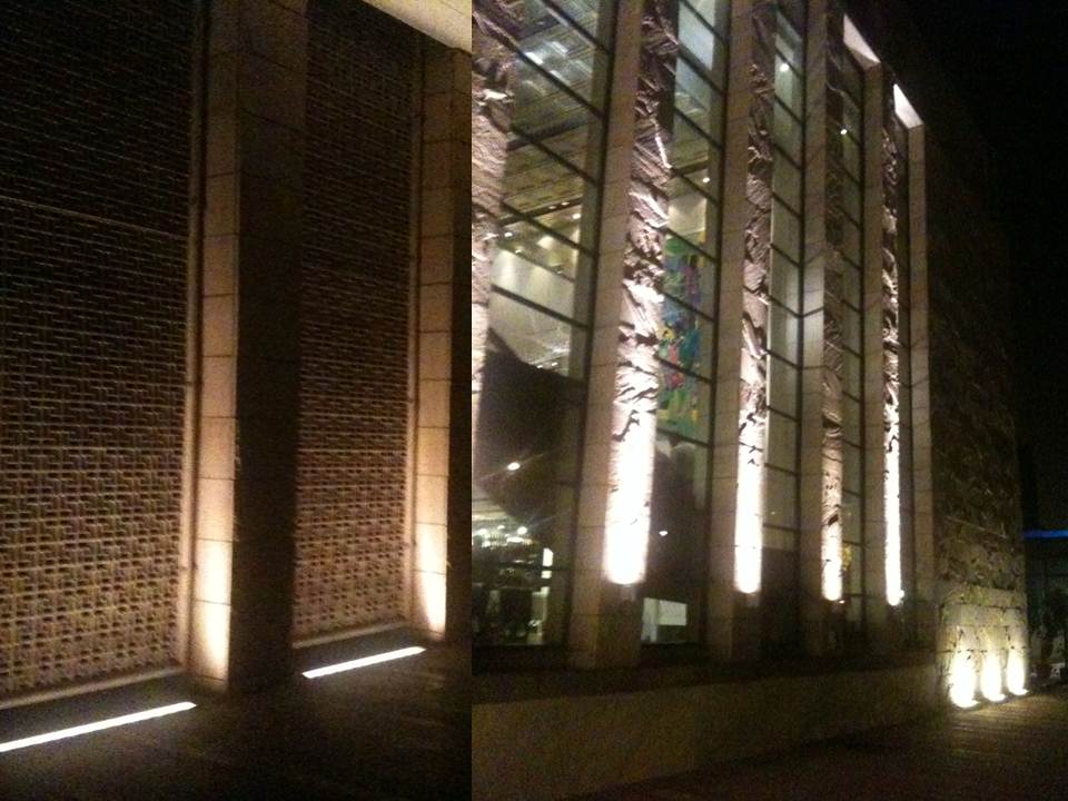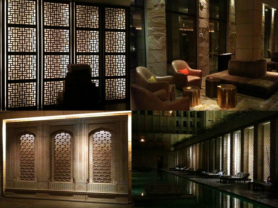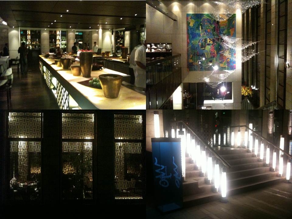Light Watch 3-40: Pictures of last night’s visit to Delhi’s latest F&B outlet “On The Waterfront” or OTW. A fusion restaurant designed by Michael Mann (I believe) with an interesting mix of local culture and modern themes. I have to admit that the lighting was well done and well balanced with the interior finishes. As we looked around before having diner I bumped into two Lutron engineers who were still fine tuning the lighting programming. The restaurant is part of the Aman Hotel in Delhi, which was also opened recently to much acclaim. There are indeed some very nice recurring lighting elements (wall washing/ screen patterns) in the hotel but also some serious short comings, but then it is always easy to criticise which I will not do without knowing the project background