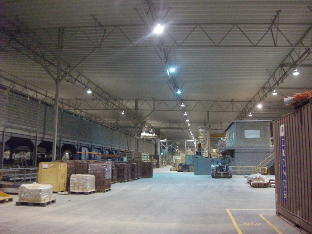 This factory produces tons of bricks and runs 24/7. The site manager knows that his lighting is probably lacking which is pretty obvious when you visually check the place already. Different colour temperatures kind of indicate that some lights are reaching end of life and even without doing any measurements you will know that this means at least 30% down on initial output. The factory is generally lit with 400W Metal Halide high bay lights. It is also visible from just observation that some of them need some serious maintenance.