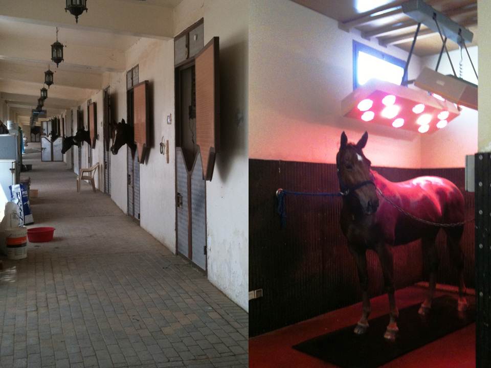 The National Equestrian Centre, note thr IR lamps for drying the horse