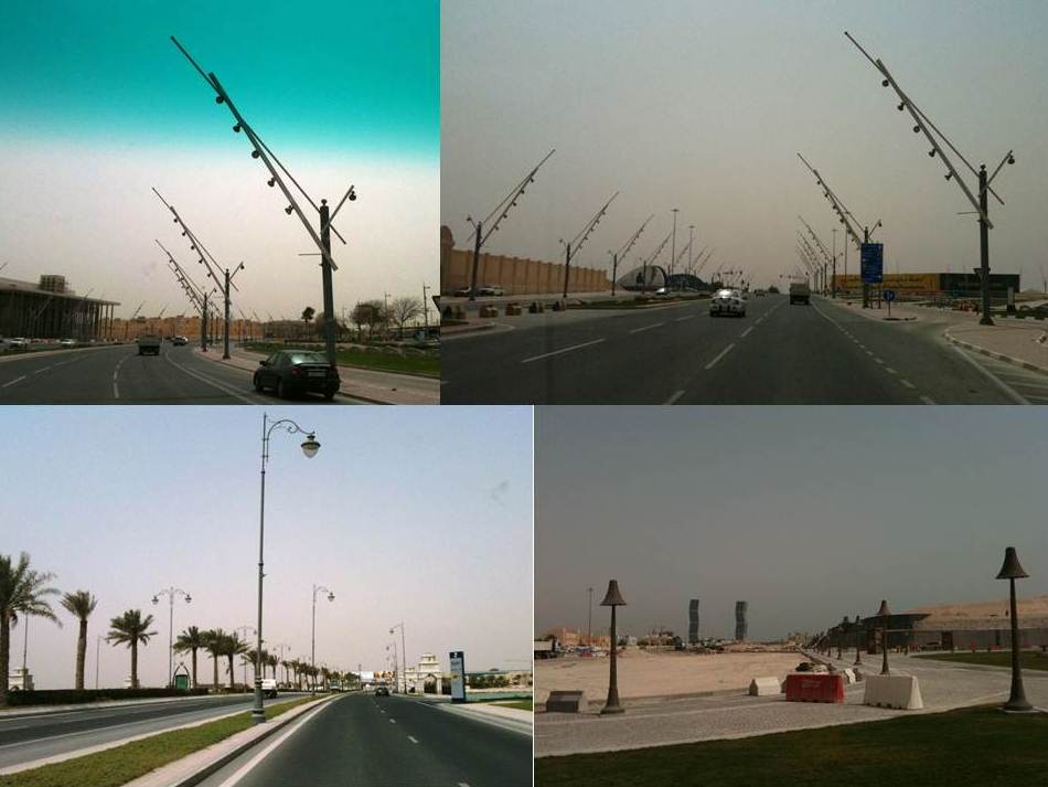 Qatar caught the world’s attention when they won with their bid to host the World Cup Soccer in 2020. Today we are in 2012, still 10 years away, but boy, oh boy, this city is one big construction site with many mega projects in the works. This morning I took the opportunity to drive around to get a good feel what the city is about and see what makes this city tick. While just over a million inhabitants live in Doha, with only one fifth being actual Qatari and the rest expatriates (!), the city is actually fairly small and easy to navigate through its well-tended roads. There is not much green and understandably the surrounding desert finds it way in the city as well by being very sandy and dusty (a challenge for lighting equipment!).