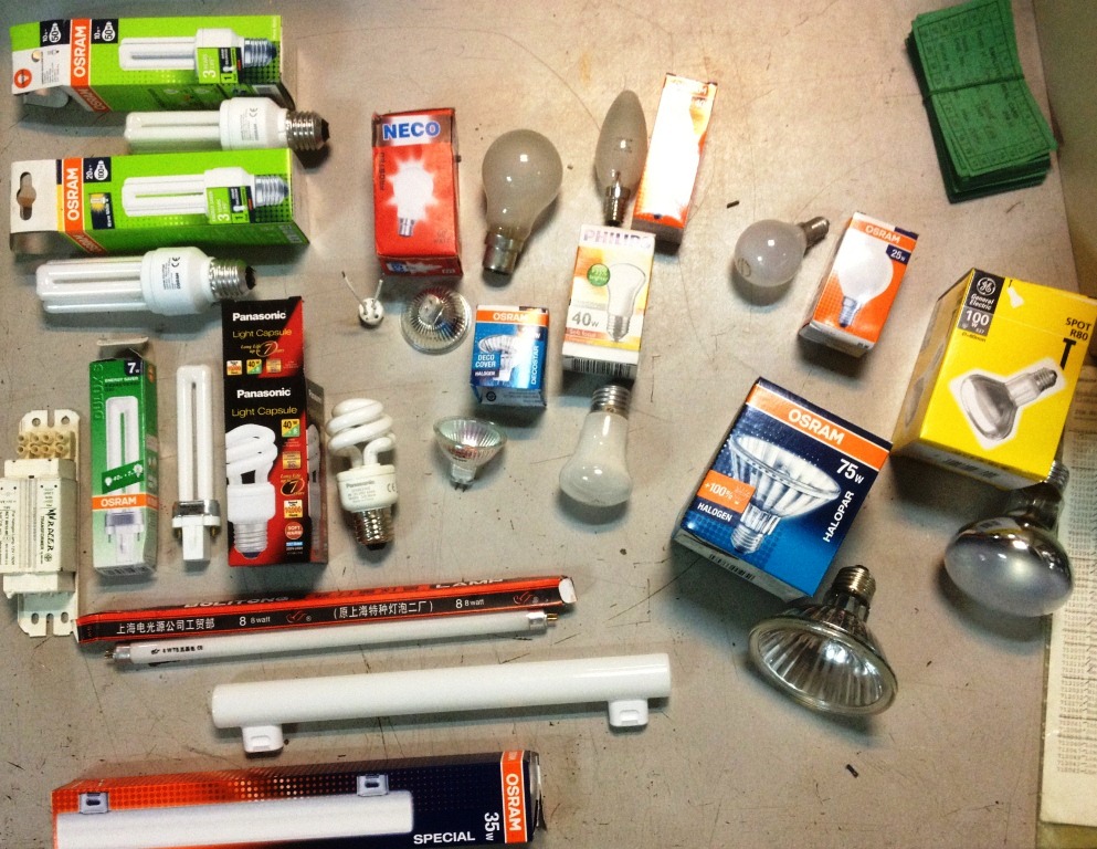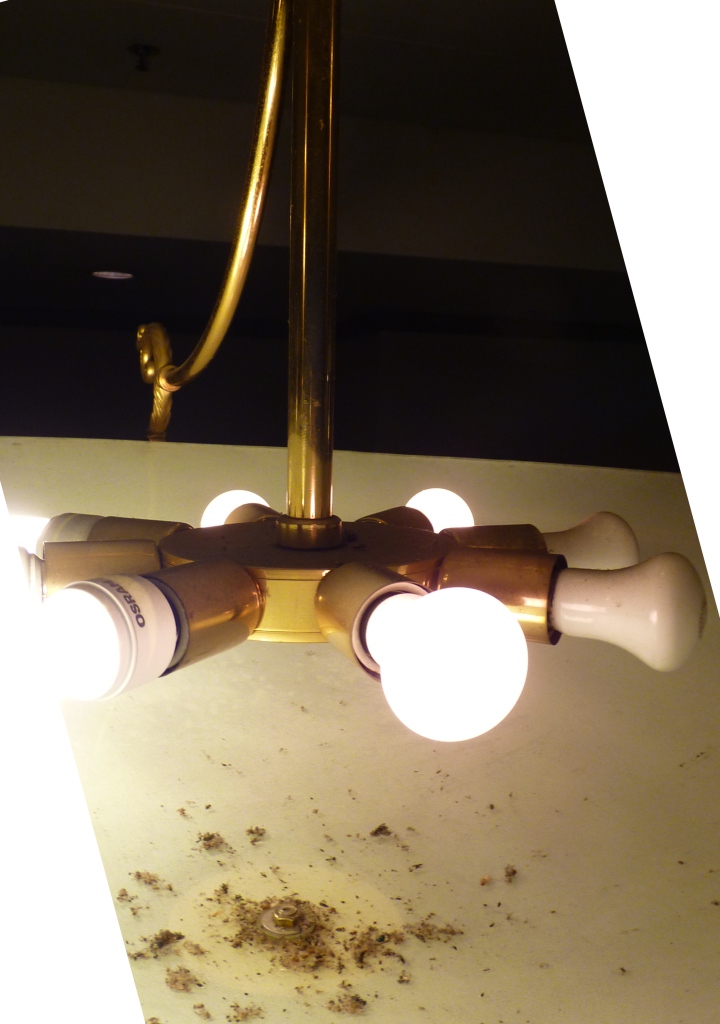 Overhead look inside a pendant…half visible CFL (left) mixed with working and non working GLS Krypton types