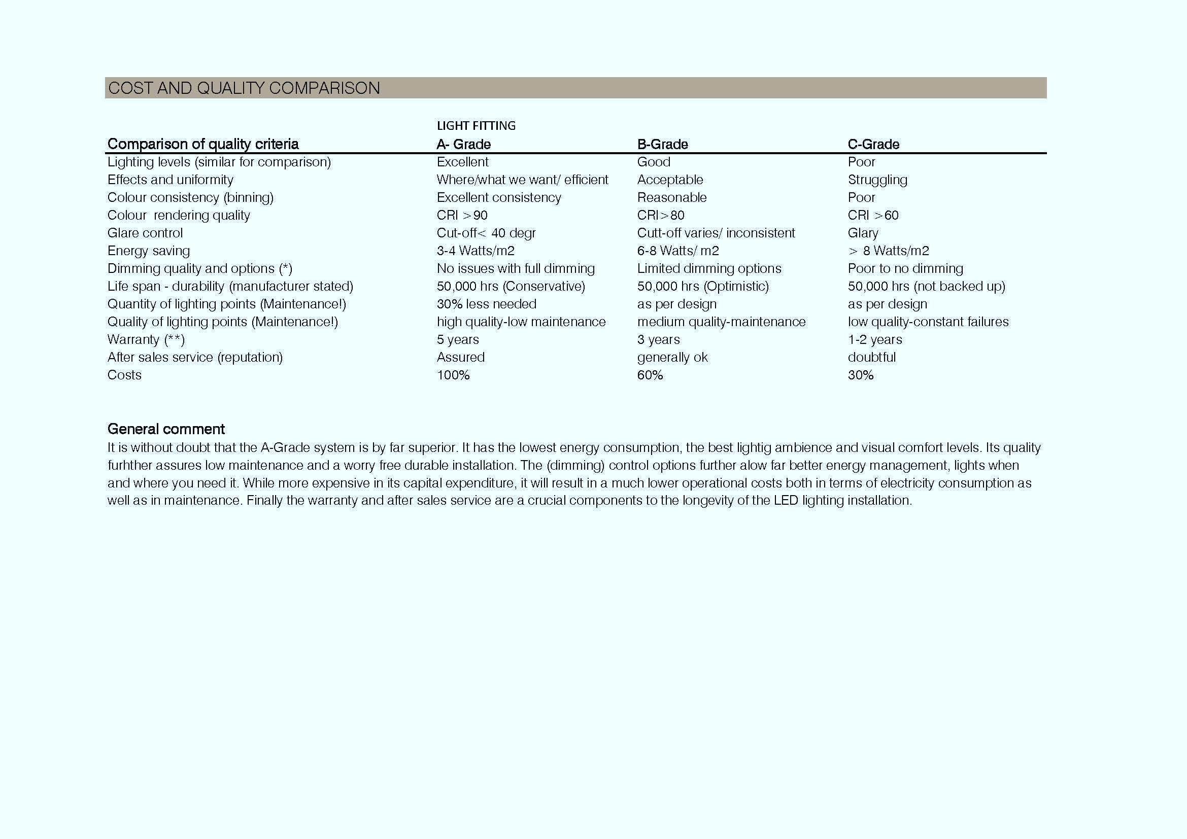 Light & Learn 3-16: Below an generic overview of the various LED quality criteria that will ultimately determine the cost and performance.