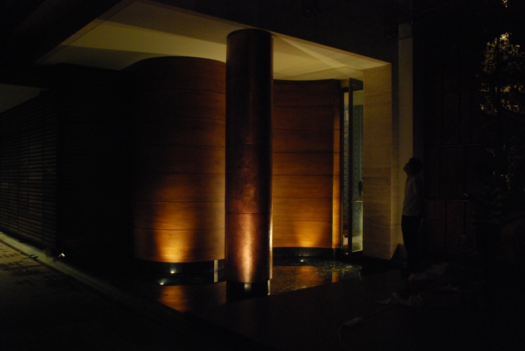 Tonight we did some light up tests for some artwork, façade finishes and water elements. Within a few tests and try-outs I knew what it had to be…but 30 years back when I started out as a lighting designer this process would have taken much, much longer. Not only the testing on site, but also the whole process of figuring out what light fittings to use. And that’s why you pay much higher fees for experienced lighting designers…:)