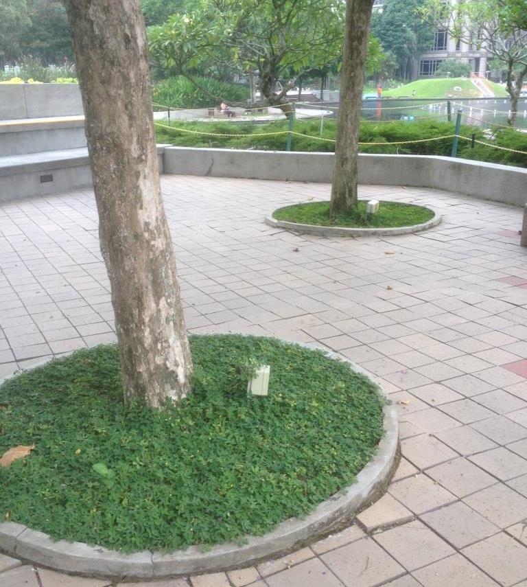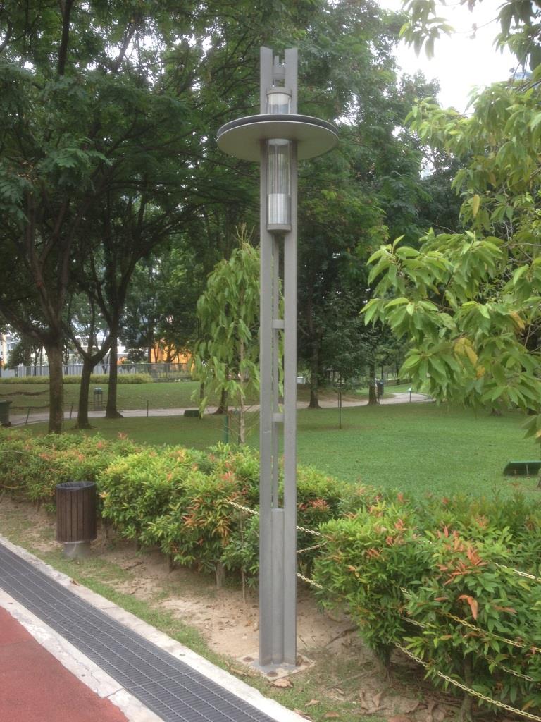 I wandered around the main water pond with its multi-million dollar water fountain feature and looked at the light fittings, installed last century (yes really!) to get a feel how the design had stood the test of time. At the time the light fitting selection was considered modern and trendy, now nearly 20 years later some still look their part but most really look dated and most of all worn and battered! Some really battered and damaged from being exposed to public “contact” and years of maintenance, some with the original “guts” replaced rudely with ill-fitting LED substitutes. But most fixtures still run on their original lamp technology, such as CFL and Metal Halide, at least so I observed during the day. I have not been able to go back at night; I hope I can one night, as that will show me how well the lights hold up in terms of performance, lighting effects and durability. I suspect that some may be failing, some may have weathered down light outputs. I also observed that most in-ground tree up-lights had gone, probably because over time they had become a major maintenance headache, leaving trees with a desolate junction box lost in uselessness. But overall, after more than 15 years of being opened to an unforgiving public the lighting design still stands!